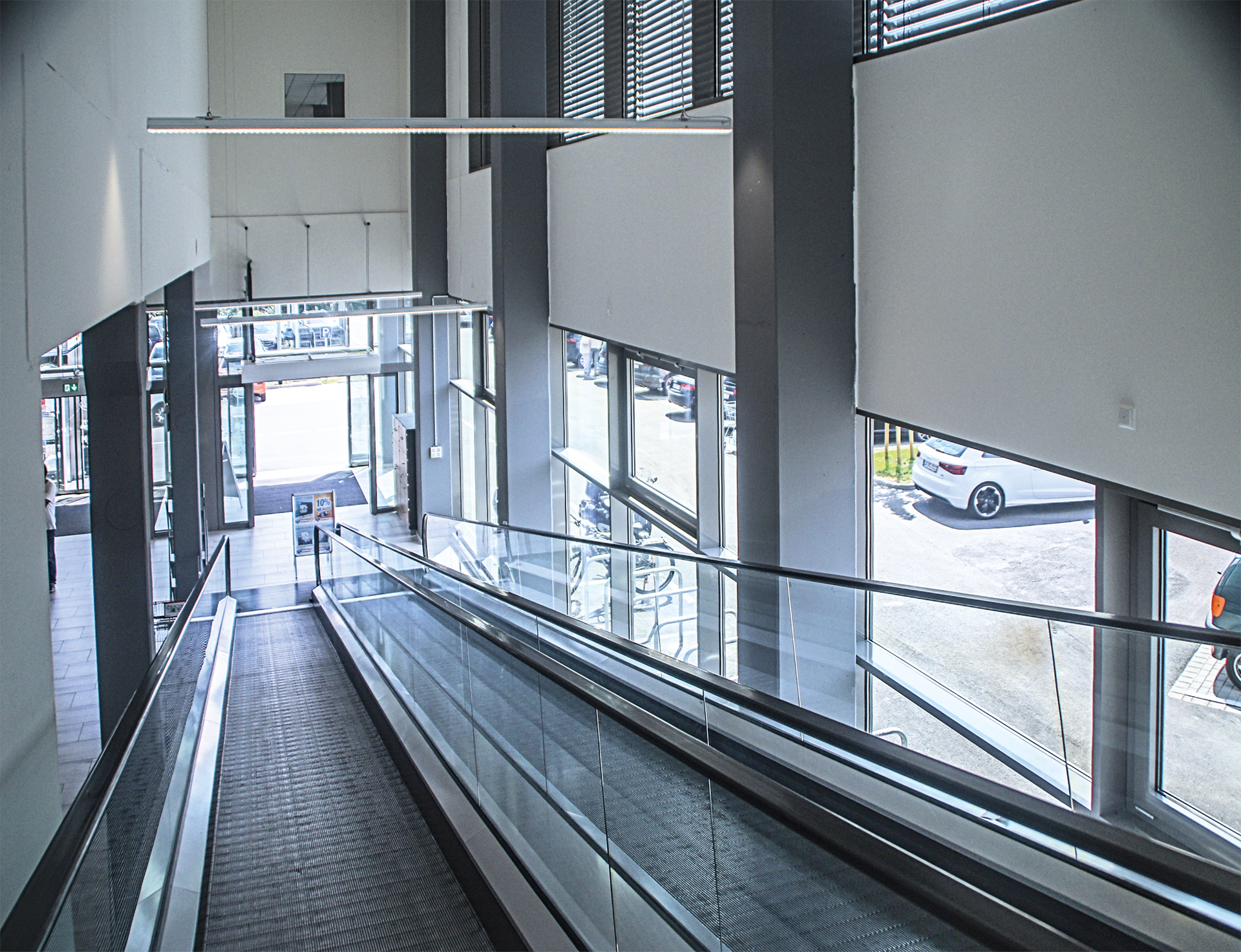 Umfangreiche Ausstattung des Gebäudes mit Sonnenschutzglas, Automatiktüren und Warema Jalousien.