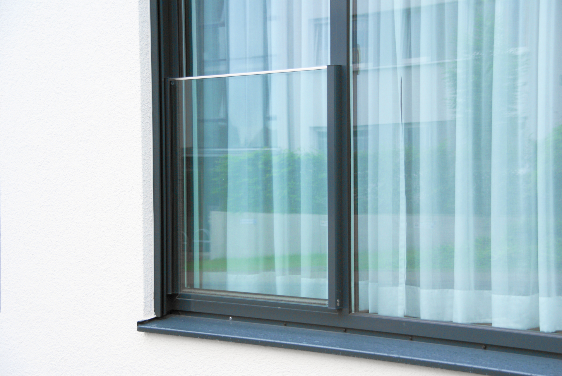 Ein besonderes gestalterisches Element ist das vollverglaste Absturzgeländer, das optisch dezent wirkt und gleichzeitig alle sicherheitsrelevanten Anforderungen erfüllt.